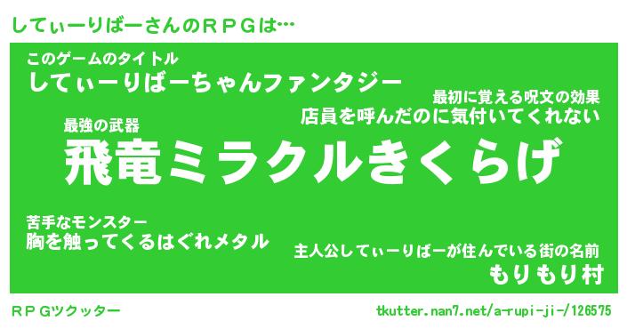 | 伝説のあだ名 | 『封印されし竜騎士してぃーりばー』 |