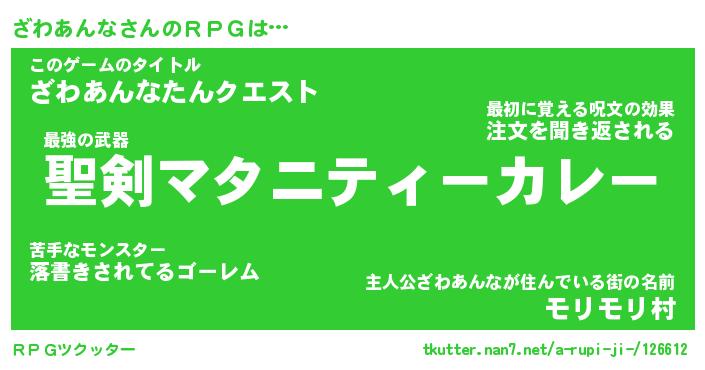 | 胡散臭い通販商品みたいなあだ名 | 『必ず成功する霊験あらたかなお札…その名も「ざわあんな」』 |