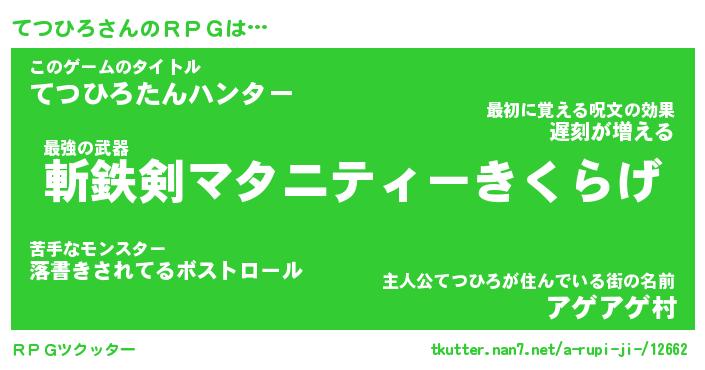 | 男性向けラノベタイトル風あだ名 | 『てつひろの憂鬱』 |