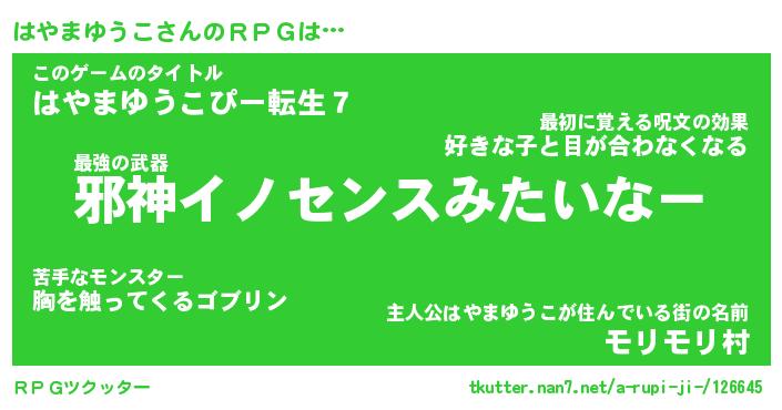 | 男性向けラノベタイトル風あだ名 | 『ハヤマユウコアートオンライン』 |