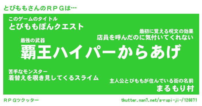 | 胡散臭い通販商品みたいなあだ名 | 『億万長者になれるブレスレット…その名も「とびもも」』 |