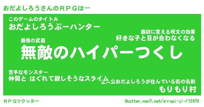| 男性向けラノベタイトル風あだ名 | 『オダヨシロウアートオンライン』 |