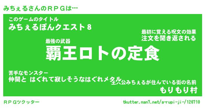| 伝説のあだ名 | 『封印されし竜騎士みちぇる』 |