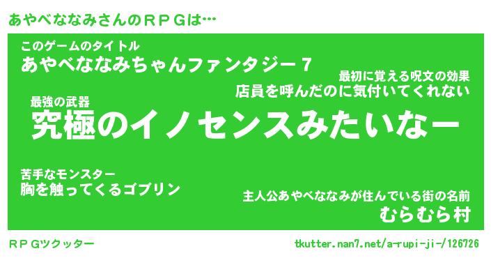 | 男性向けラノベタイトル風あだ名 | 『あやべななみの憂鬱』 |