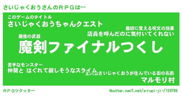 | 男性向けラノベタイトル風あだ名 | 『さいじゃくおうの憂鬱』 |
