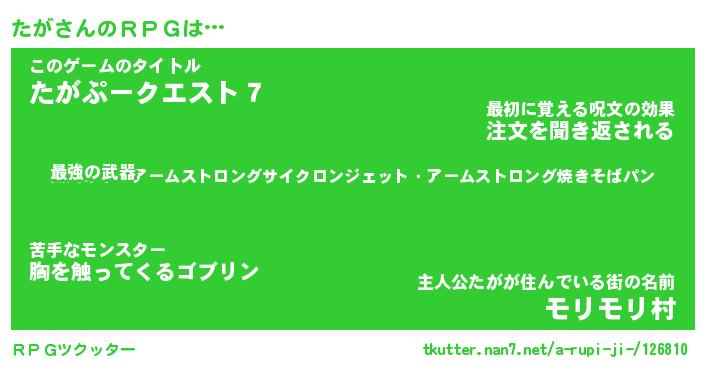 | 男性向けラノベタイトル風あだ名 | 『タガアートオンライン』 |