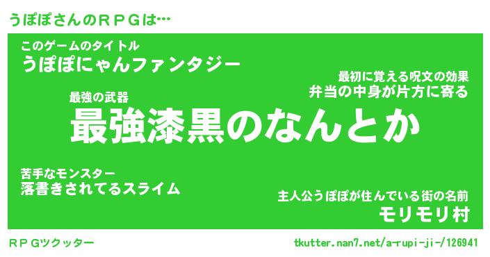 | 男性向けラノベタイトル風あだ名 | 『ウポポアートオンライン』 |