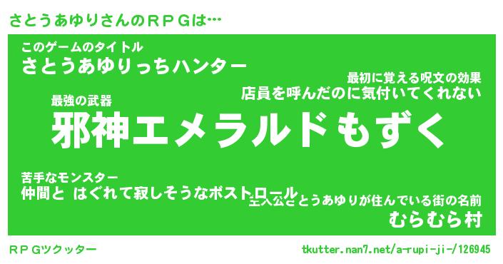 | 伝説のあだ名 | 『封印されしスナイパーさとうあゆり』 |
