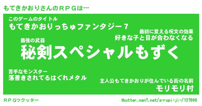 | ヒーロー風カッコイイあだ名 | 『スーパーモテキカオリ』『幻影騎士モテ』 |