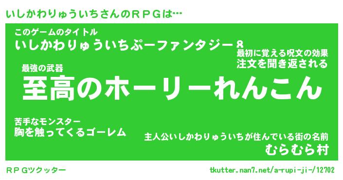 | 胡散臭い通販商品みたいなあだ名 | 『モテモテ間違いなし水晶球…その名も「いしかわりゅういち」』 |