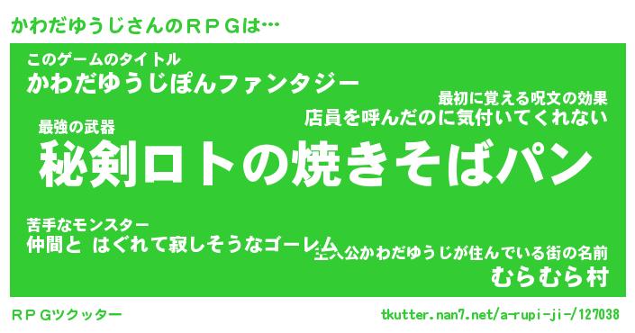 | 男性向けラノベタイトル風あだ名 | 『かわだゆうじの憂鬱』 |