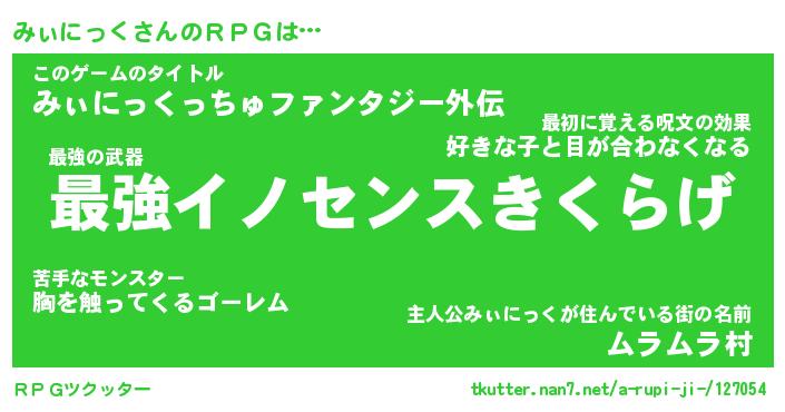 | ヒーロー風カッコイイあだ名 | 『スーパーミィニック』『幻影騎士ミィ』 |