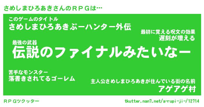 | 伝説のあだ名 | 『不死鳥の竜騎士さめしまひろあき』 |