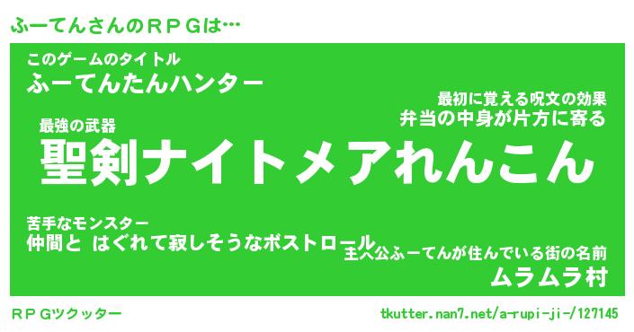 | 男性向けラノベタイトル風あだ名 | 『ふーてんの憂鬱』 |