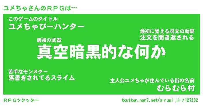 | ヘコむあだ名 | 『ユメにゅー』『レバニラ』『ユメを』 |