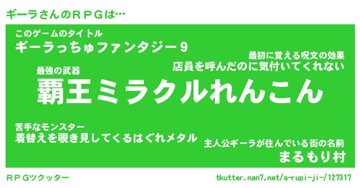 | ファンタジー風あだ名 | 『ギーフェル』『エターナルギーラー』 |