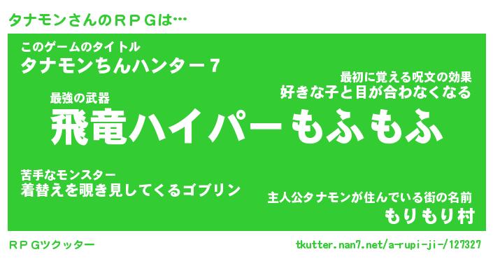 | 男性向けラノベタイトル風あだ名 | 『タナモンアートオンライン』 |