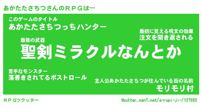 | 男性向けラノベタイトル風あだ名 | 『あかたたさちつの憂鬱』 |