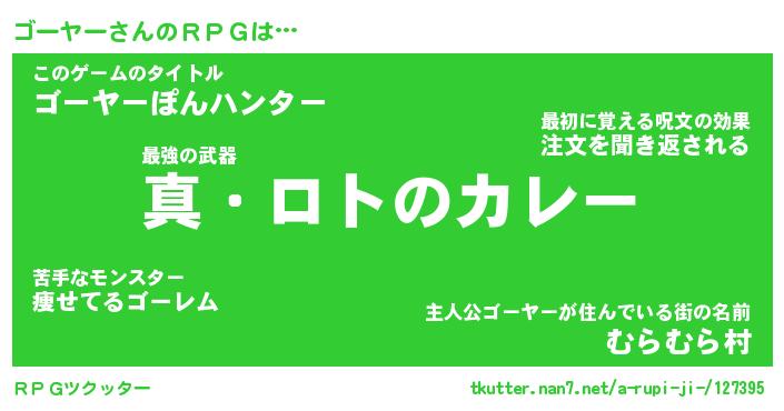 | ファンタジー風あだ名 | 『ゴーフェル』『エターナルゴーヤーー』 |