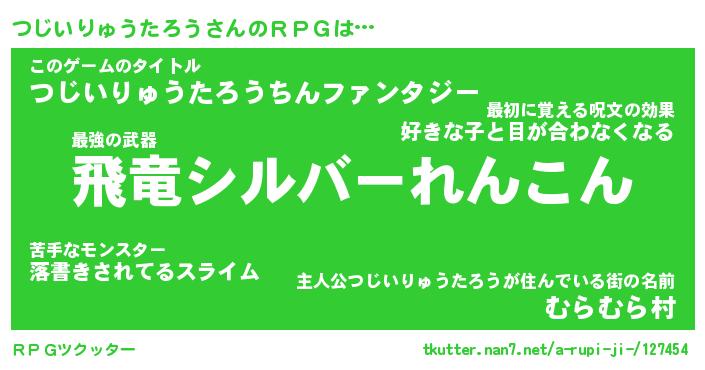 | 男性向けラノベタイトル風あだ名 | 『ツジイリュウタロウアートオンライン』 |