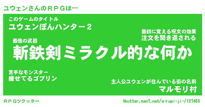| ファンタジー風あだ名 | 『ユウフェル』『エターナルユウェンー』 |