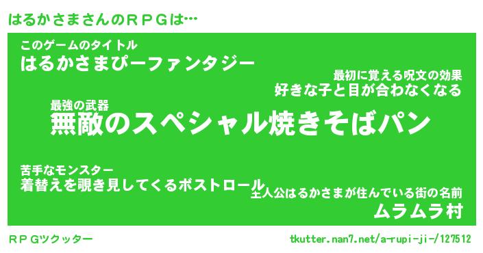 | ファンタジー風あだ名 | 『ハルフェル』『エターナルハルカサマー』 |