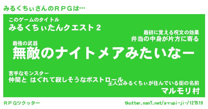 | 男性向けラノベタイトル風あだ名 | 『ミルクチィアートオンライン』 |