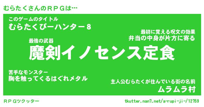 | 男性向けラノベタイトル風あだ名 | 『むらたくの憂鬱』 |