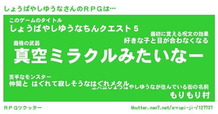 | 伝説のあだ名 | 『封印されし竜騎士しょうばやしゆうな』 |