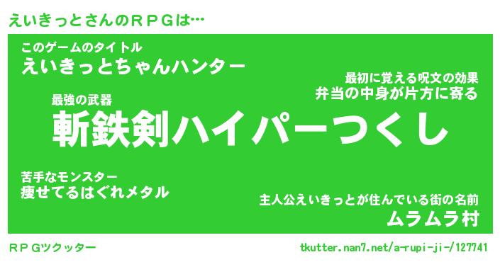 | 男性向けラノベタイトル風あだ名 | 『えいきっとの憂鬱』 |
