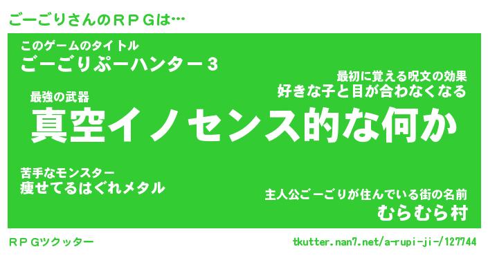 | 伝説のあだ名 | 『封印されしスナイパーごーごり』 |