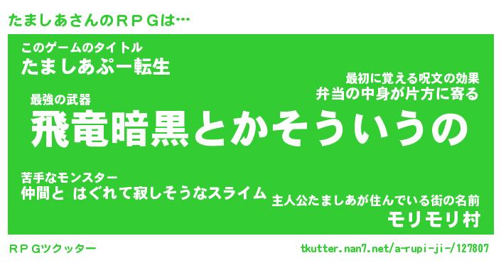 | 伝説のあだ名 | 『封印されし傭兵たましあ』 |