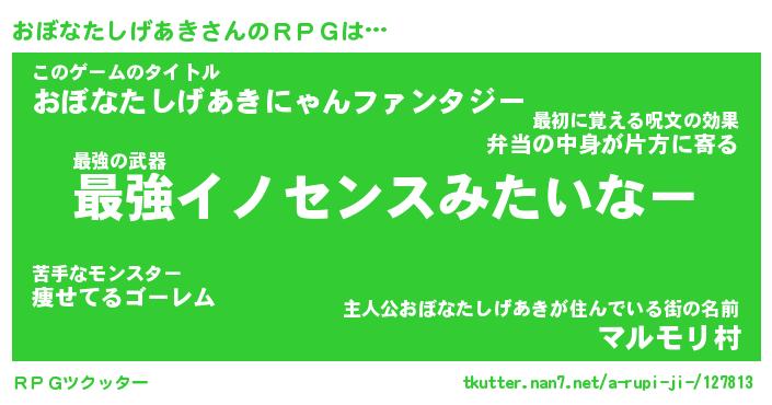 | 男性向けラノベタイトル風あだ名 | 『オボナタシゲアキアートオンライン』 |