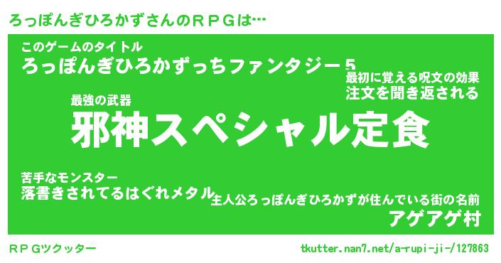 | 伝説のあだ名 | 『封印されし竜騎士ろっぽんぎひろかず』 |
