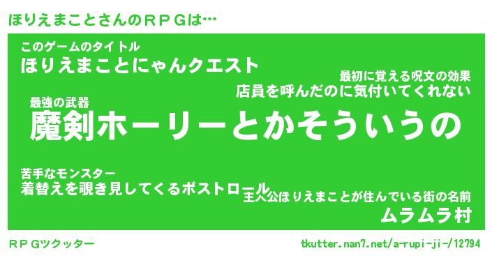 | ヘコむあだ名 | 『ほりふぇ~』『牛乳』『ほり太郎』 |