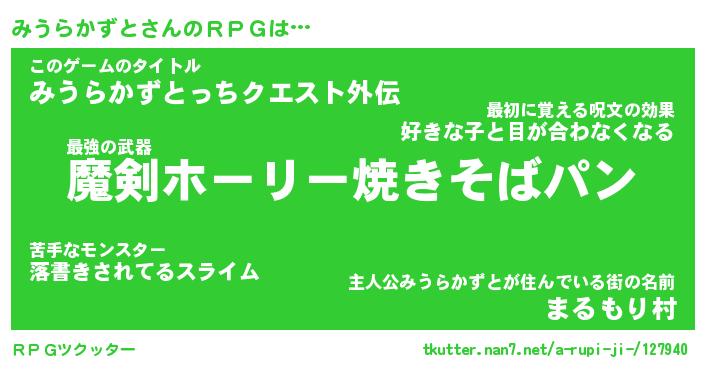 | ヒーロー風カッコイイあだ名 | 『スーパーミウラカズト』『暗黒騎士ミウ』 |
