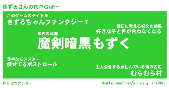 | ファンタジー風あだ名 | 『キズフェル』『エターナルキズルー』 |