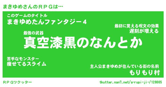 | ファンタジー風あだ名 | 『マキフェル』『エターナルマキユメー』 |