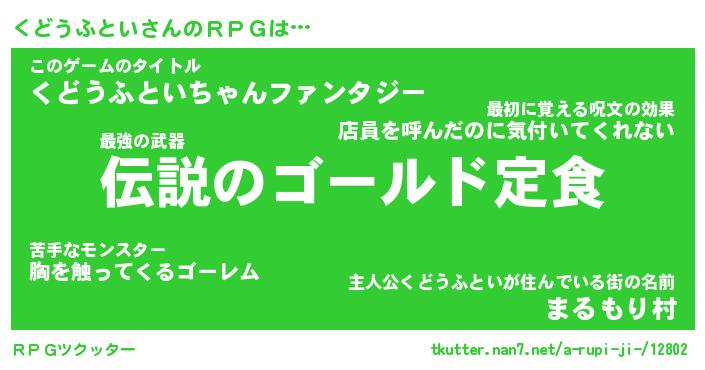 | 男性向けラノベタイトル風あだ名 | 『くどうふといの憂鬱』 |