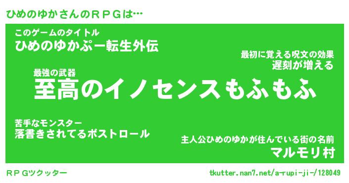| ファンタジー風あだ名 | 『ヒメフェル』『エターナルヒメノユカー』 |
