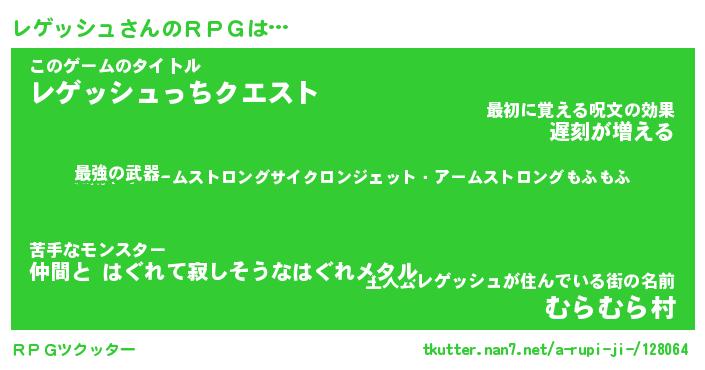 | ファンタジー風あだ名 | 『レゲフェル』『エターナルレゲッシュー』 |