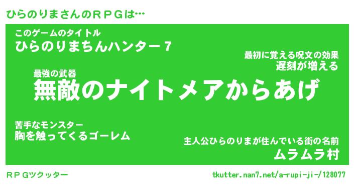 | 男性向けラノベタイトル風あだ名 | 『ヒラノリマアートオンライン』 |