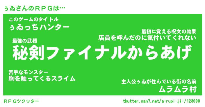 | ファンタジー風あだ名 | 『ゥヰフェル』『エターナルゥヰー』 |