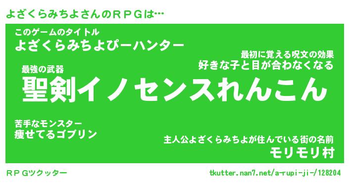 | 胡散臭い通販商品みたいなあだ名 | 『必ず成功する霊験あらたかなお札…その名も「よざくらみちよ」』 |
