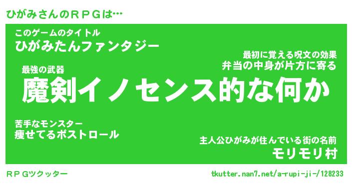 | ヒーロー風カッコイイあだ名 | 『スーパーヒガミ』『ウルトラひがみマン』 |