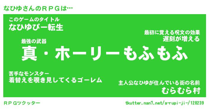 | ファンタジー風あだ名 | 『ナヒフェル』『エターナルナヒユー』 |