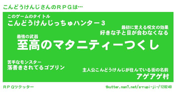 | 男性向けラノベタイトル風あだ名 | 『コンドウケンジアートオンライン』 |