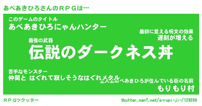 | 肩書あだ名 | 『あべあきひろ店長』『あべあきひろ班長』 |
