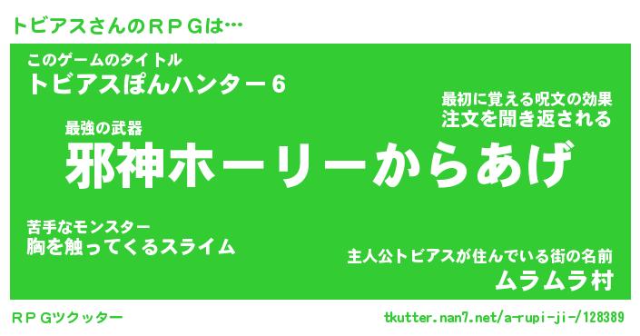 | 男性向けラノベタイトル風あだ名 | 『トビアスアートオンライン』 |