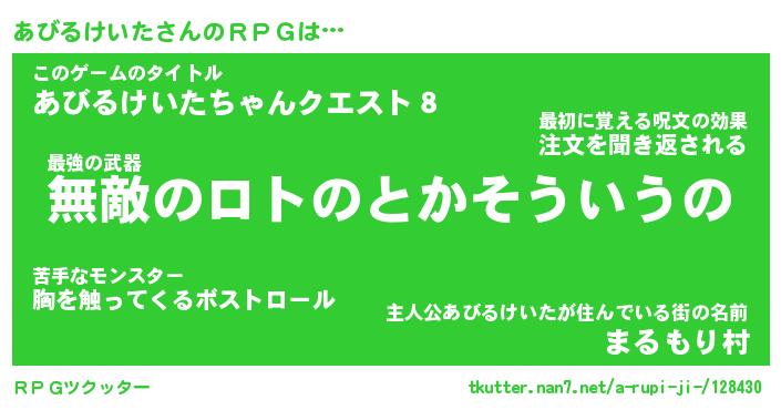 | 男性向けラノベタイトル風あだ名 | 『アビルケイタアートオンライン』 |